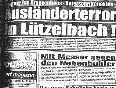 erinnern." Wohl auch nicht in seiner Partei, der SPD. Es hätte z.B. für einen früheren Kreisvorsitzenden (70er Jahre) bedeuten können, sich an seine Jahre in Sonthofen zu erinnern: als Lehrer an einer Adolf-Hitler-Schule, damals eine Kaderschmiede des Dritten Reiches. Im März 1997 präsentierte der (heutige) SPD-Pressewart im erwähnten Monatsblatt Auszüge einer von Landrat Schnur gehaltenen Feierrede zu "175 Jahre Odenwaldkreis". Dabei erscheint der 12 Jahre währende Zivilisationsbruch auch im Mümlingtal in bekannter und Sattler-ähnlicher Optik: 1933 wird das "antifaschistische(n) Bündnis ... brutal zerschlagen" - scheinbar von Außenstehenden - und kurz darauf, in den Kriegsjahren, "litt die Bevölkerung des Odenwaldes" schon wieder und "nicht weniger als andere Regionen." Soviel vom heimatliebenden Landrat nicht zur "braunen Gefahr", sondern zur braunen Realität, die zum Glück nur noch jüngere Geschichte ist. Nun mag das wichtigste (und natürlich auch antifaschistische) Anliegen sein, die jahrzehntelange Macht der Partei zu erhalten und damit auch die kleinen und großen Vorteile für die vielen kleinen und großen Leute, die (auch) zu diesem Zweck der hier so dominanten Partei angehören. Gelegentliche Peinlichkeiten, vor allem wenn über sie berichtet würde, sind in einem solchen Klima kein Anlass zum Nachdenken oder zur Debatte. Sie stören das Bild, weswegen sie am Liebsten ausgeblendet werden. Fremdenfeindlichkeit im Odenwald? Wo?Ähnlich verhielt es sich mit der folgenden Schlagzeile, die kurz nach Sattlers Ausführungen über "Plündernde Polen und Russen" (Kriegsgefangene bzw. Zwangsarbeiter) und die "Unmenschlichkeiten" von Amerikanern und Franzosen in seinem zweiten Hausblatt auf der ersten Seite zu lesen war: Auch diese Schlagzeile soll ein der SPD angehörender Chefredakteur gesetzt oder gebilligt haben. Kritik an solchen Formulierungen muss nicht bedeuten, kriminelle Handlungen eines oder einiger Ausländer zu bestreiten. Und es mag durchaus sein, dass (Gewalt-)Kriminalität angemessener begegnet werden muss. Doch wer aus dem möglichen "Terror" (zum Beispiel) eines Polen oder eines Juden einen Polenterror oder einen Judenterror macht, schert die ganze Gruppe über einen Kamm - und in zugespitzten, völlig verrohten Zeiten könnte sie auch über die gleiche Klinge springen. Es ist nicht bekannt, dass in irgendeiner Odenwälder Zeitschrift die Problematik solcher Schlagzeilen diskutiert wurde. Dr. Peter W. Sattler hat übrigens auch Bücher mitverfasst: Eines über die Kreisstadt ("Historisches Erbach", natürlich minus 1933-1945) und eines über "Kulinarische Streifzüge" durch den Odenwald, als weiterer Mitverfasser ist der ebenfalls etwas rundlich wirkende Horst Schnur genannt. Man kennt sich eben, mitunter lächelt man auch in die Kamera des anderen oder schreibt über ihn wieder mal einen netten Artikel. Was den Dr. Sattler auch weit wichtiger macht für das System Schnur und dessen PR als den Genossen Gastwirt mit seinen rechten Gästen. Wechselseitige Rücksicht (ich schone Dich, Du schonst mich) ist in Ordnung und auch menschlich. Majestätsbeleidigung im Mümling-GauNur eines ist im Odenwald überhaupt nicht in Ordnung und daher auch ganz unüblich: Majestätsbeleidigung. Auch der Genosse Gastwirt zog sich den Bannstrahl seiner Partei wohl erst in dem Moment zu, als er ankündigte, "dass spätestens von nun an keine Sozialdemokraten mehr in seinem Hotel erwünscht seien. Dies könne man den führenden Köpfen der Partei ruhig ausrichten."Ganz schön frech für die "führenden Köpfe der Partei", er wird schon sehen, welche (ruinösen?) Auswirkungen das auf Dauer für sein Geschäft hat. Es heißt, dass Horst Schnur bei Kritik "empfindlich" sei, eine Presseerklärung aus seinem eigenen Haus schildert ihn als einen Mann, der "nahezu allergisch und temperamentvoll" reagiert, wenn er Nachteile auch "nur erahnt". Sollte er Kritik an sich als "Nachteil" empfinden, und "allergisch und temperamentvoll" reagieren, wenn er nachteilige Kritik an sich auch "nur erahnt" - dann muss man auf der Hut sein. Wer weiß schon, wie (temperamentvoll) ein "nahezu" Allergiker reagiert? Die Angst der Journalisten vor AllergikernDiese Vorsicht ist allen Odenwälder Presseorganen anzumerken. Nicht nur dem Monatsblatt und dem Wochenblatt, sondern auch dem Tagblatt bzw. der Odenwälder Heimatzeitung, das sich nicht ohne Grund noch immer "Amtsblatt" nennt.Weil die für das Feuilleton der OHZ schreibende Journalistin Liane Probst-Simon dort wohl nicht ganz so keck schreiben kann, wie sie gerne möchte, ist sie für solche Zwecke auf das Internet ausgewichen. Eine auch aus Regionen wie China bekannte Möglichkeit zum nonkonformistischen Meinungsausdruck. Bezeichnenderweise nennt sie ihr Online-Magazin "Odinprawda", womit sie ein verflossenes Reich des Real-Sozialismus zitiert, dessen (Amts-)Presse mit seinen "unermüdlich wirkenden" Führern stets liebevoll umging - auch im vorauseilenden Gehorsam. Bei soviel Presserummel und Personenkult fielen im Sowjet-Reich auch die Wahlen entsprechend aus - mindestens 75% für den Chef (was zugegeben noch weitere Gründe hatte.) Doch auch die kecke Liane lässt Vorsicht walten, vorzugsweise dann, wenn sie vom "Kartoffelkönig" Horst Schnur spricht. Dann soll ein blinkendes "Achtung Satire!" dem "Landfürst" wohl signalisieren: Bitte, bitte nicht "allergisch" reagieren, kein "Klaps", der weh tut, ich bin immer noch ein braver "Untertan". Macht und Ohnmacht in der ProvinzÜber einen Schröder oder Koch lässt sich aus einigem Abstand gefahrlos spotten, über einen "Landgraf" nicht, selbst wenn der Graf nicht so "allergisch" auf Nachteiliges reagiert wie der machtfüllige Horst Schnur und die Grafschaft nicht so durchdringend verfilzt ist wie der Odenwaldkreis.Dem allzu kritischen Untertan können, wenn er in der Grafschaft auch lebt, allerlei Strafen das lästerliche Maul stopfen. Vielerlei Vorteile können verloren gehen, vielerlei Nachteile (